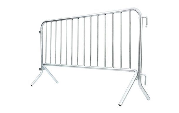 Our heavy-duty interlocking metal barricades have loops on one side and hooks on the other, with a bent top hook to prevent unauthorized disassembly. Without this feature, crowds could lift and separate the barricades. To interlock them, insert the hooks at a 30-degree angle into the loops of the adjacent barricade, creating a secure, continuous barrier that stays in place even with high-energy crowds.