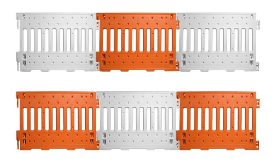 Blow-molded interlocking connectors make it possible to erect a strong, stable barrier - even on uneven terrain.