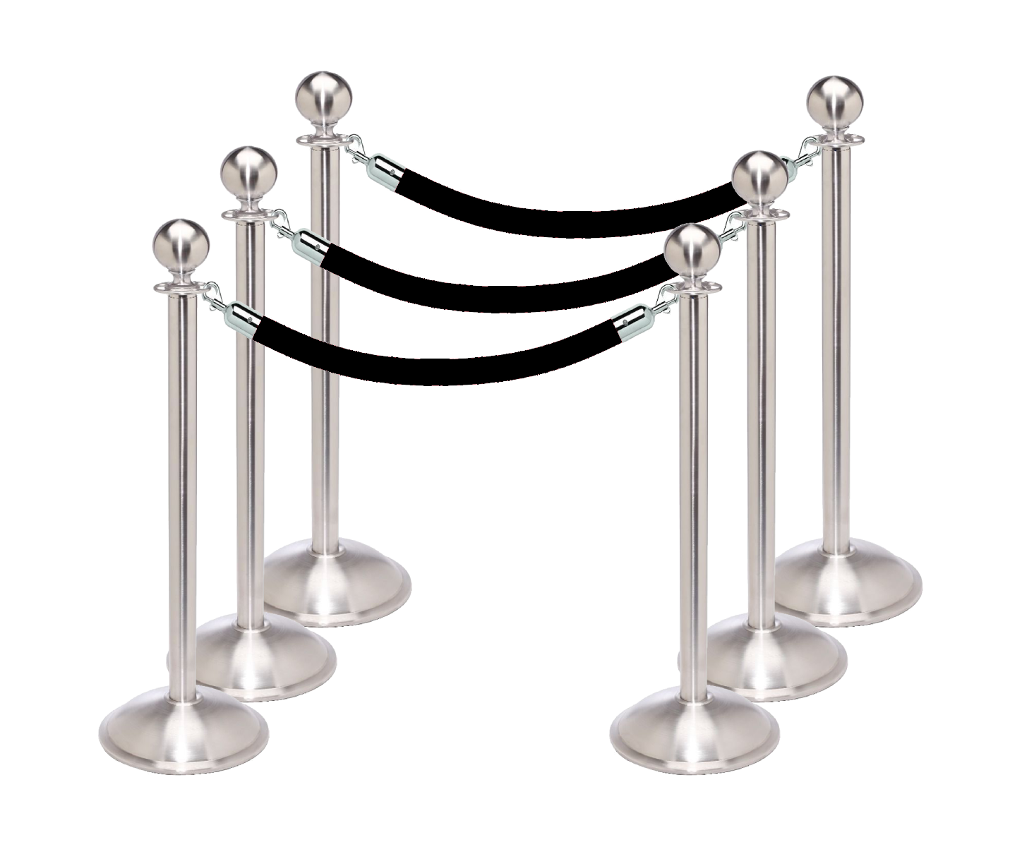 Our top of the line RopeMaster stanchions and our best-selling velour ropes, available at bundle pricing. You’ll receive 6 stanchion posts with sloped bases and unique ball-top designs, available in either stainless steel or polished brass finishes, and 4 of our plush velour ropes, constructed of dense foam with a durable chain core. Ropes are offered in an array of colors to compliment your unique needs.