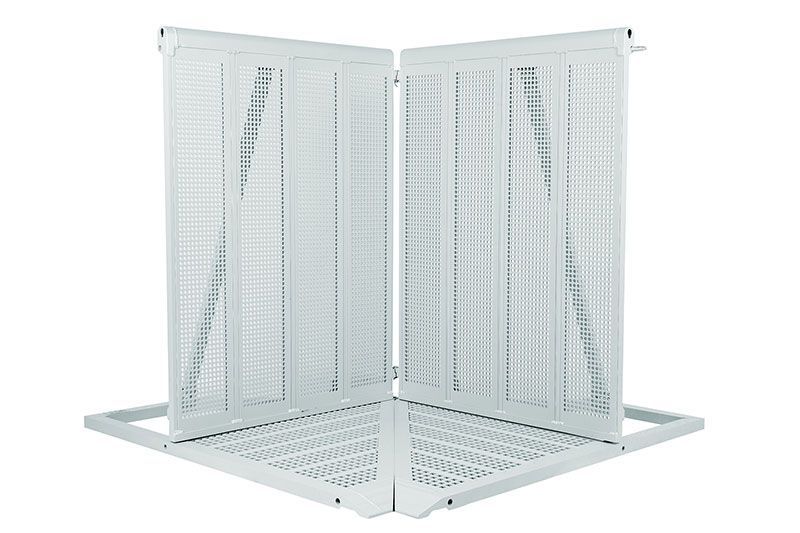 The StageGuard A-400 is suitable for right and left-hand corners. Constructed of the toughest aluminum alloy, it has been independently tested for strength and durability. Use night and day, indoors and out, in any temperature or weather condition.